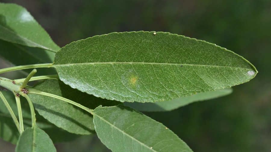 The fungus behind red leaf blotch only infects almond leaves and has a long incubation period of 35 to 40 days. Symptoms appear in May, with trees potentially defoliating by late August. Fallen, infected leaves serve as the primary inoculum source for the next season. Red leaf blotch presents a challenge because it only goes through one infection cycle per season, meaning that prevention is key.