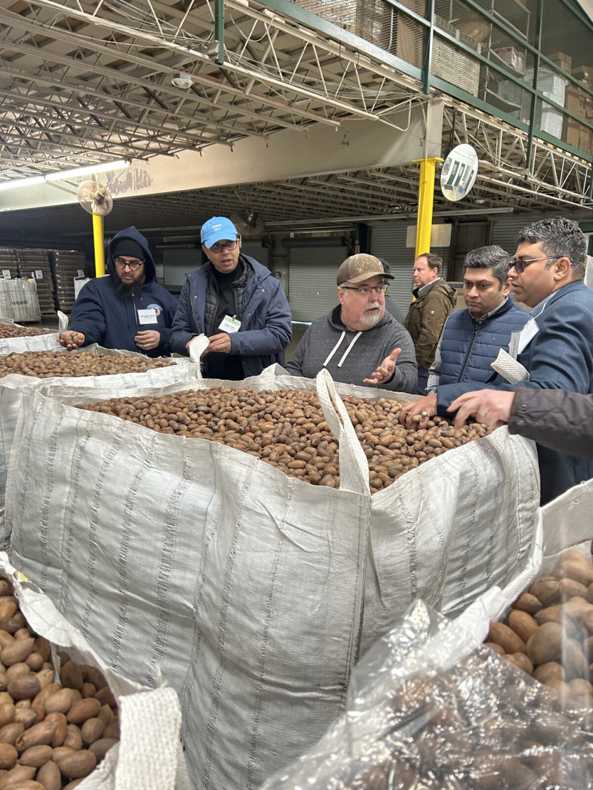 Key Indian nut importers toured U.S. pecan industry production and processing facilities, including this visit to a processing facility at Lane Southern Orchards in Fort Valley, Georgia.