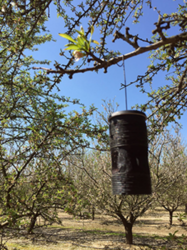 UC IPM guidelines recommend that growers place egg traps in their orchards by March 15, and that there be at least one trap for every 10 acres, or a minimum of four traps per orchard. More traps – as many as 10 per orchard – allow for a more accurate estimate, experts say.